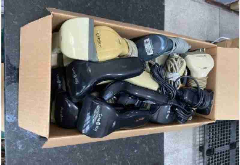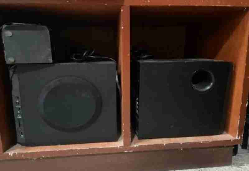 Lote Composto por 25 leitores de código de barras e 8 caixas de som classificadas como ociosas /antieconômicas, sem uso e com desgaste aparente.