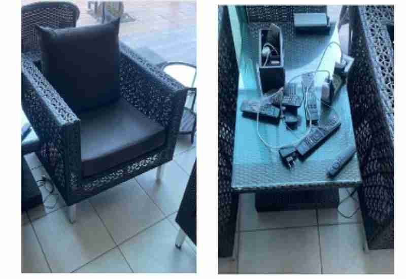 - 01 (um) Conjunto de área externa com 02 (duas) Poltronas, 01 (um) Sofá de dois lugares + 01 (uma) Mesa de Centro, avaliado em R$ 6.000,00 (seis mil reais);